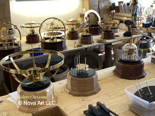 A family-run business, we have been handcrafting and selling our unique orrery models for over 30 years, first at art shows, then in fine art catalogs such as Gaiam, National Geographic, Astronomical Society of the Pacific, and Circa/Riverside Trading. We also ran a science retail outlet, Science Artworks, on the Pearl St. Mall in Boulder CO for 7 years. Now, we are entirely web based retail through our online sales channels. We currently list on Etsy and our website.